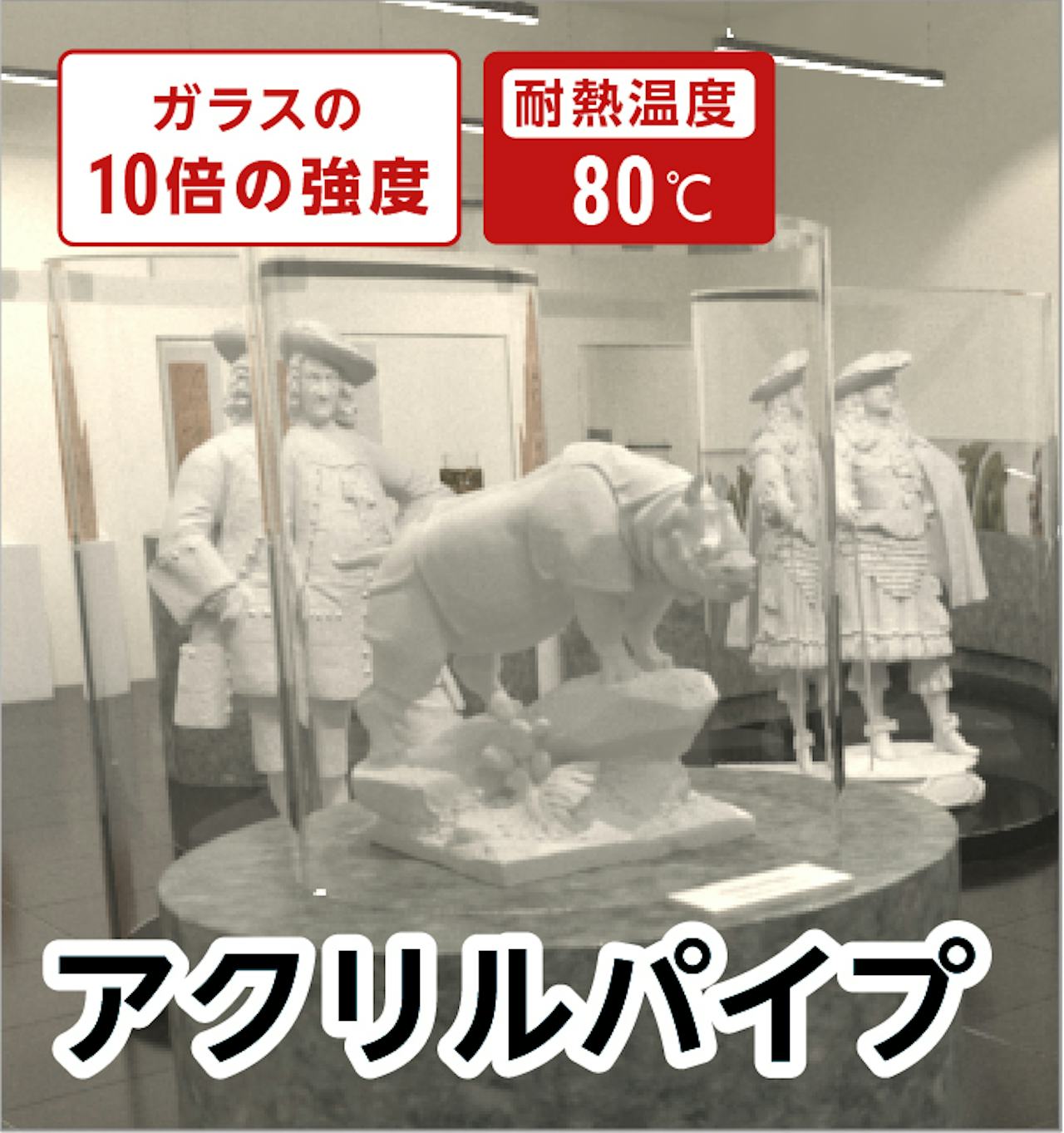 看板や大型水槽などに多数採用。独自手法で製造した摩擦傷のないクリアな仕上がり。
