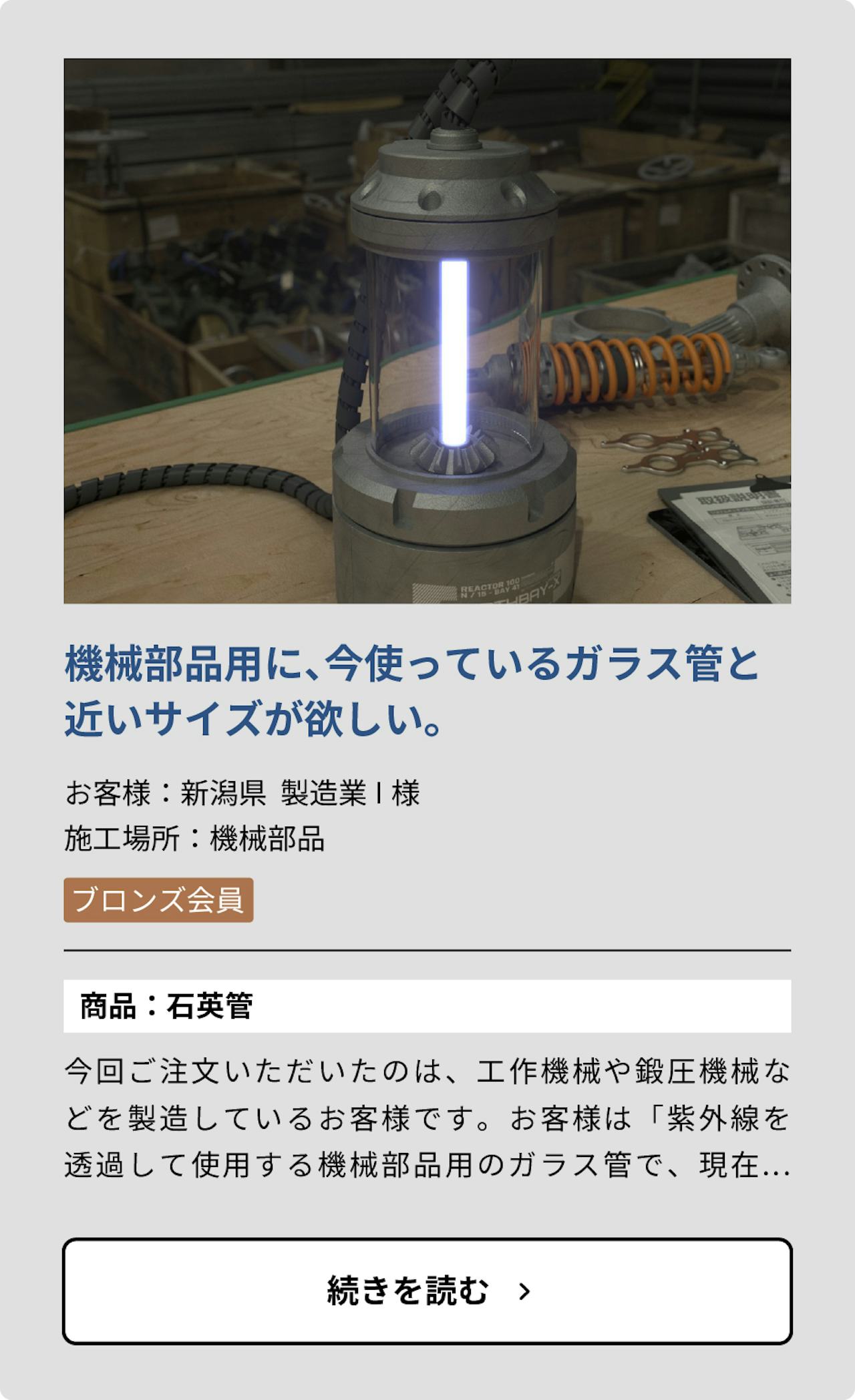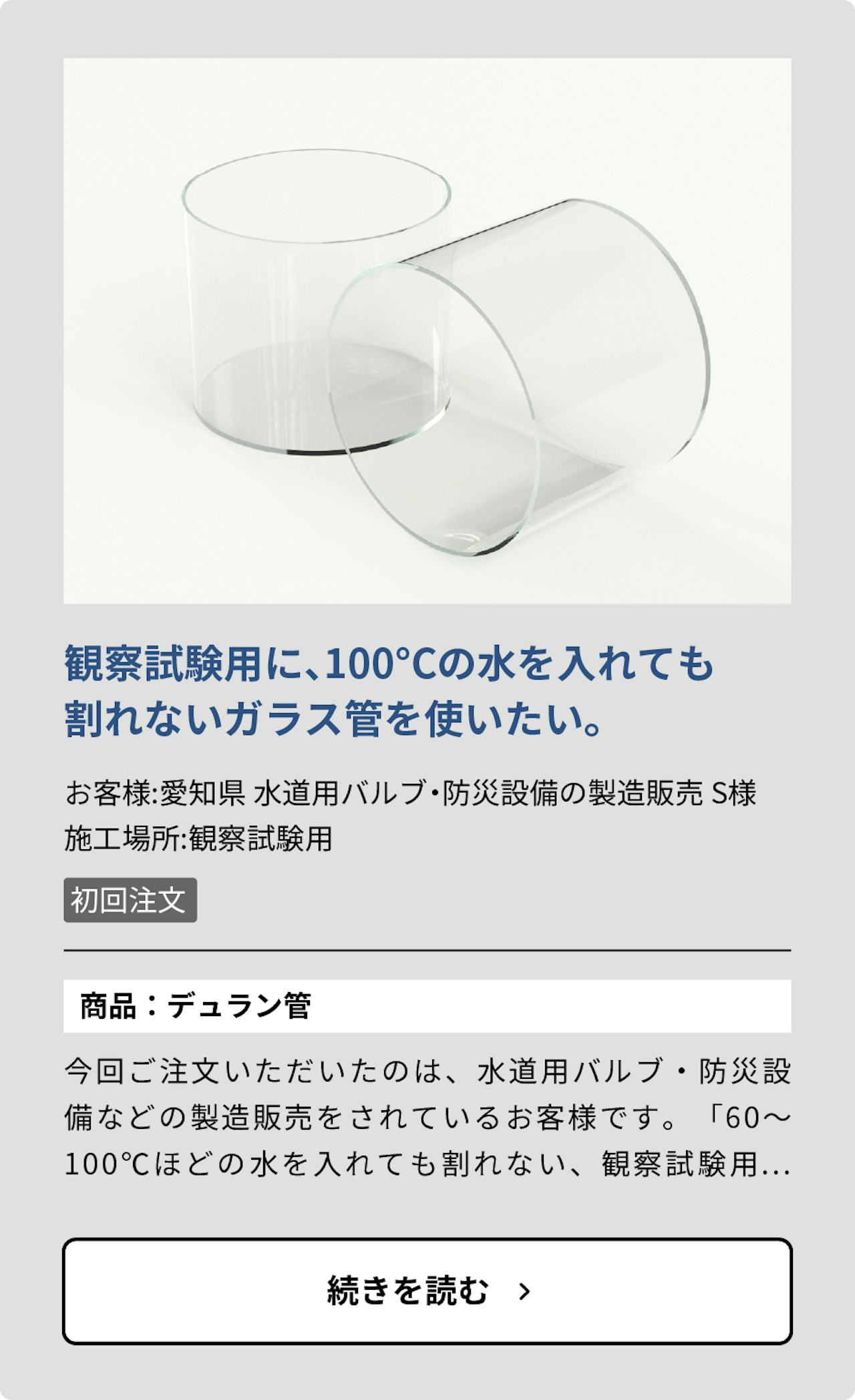 ガラス管の中でも特に耐熱性・透明度に優れ、光学機器などにも多数採用。