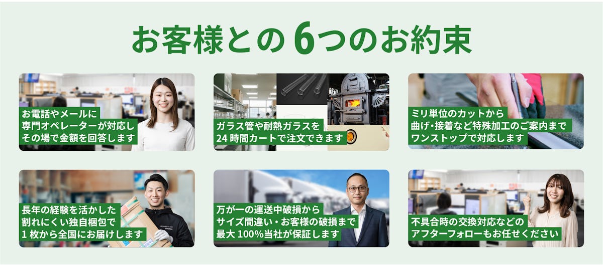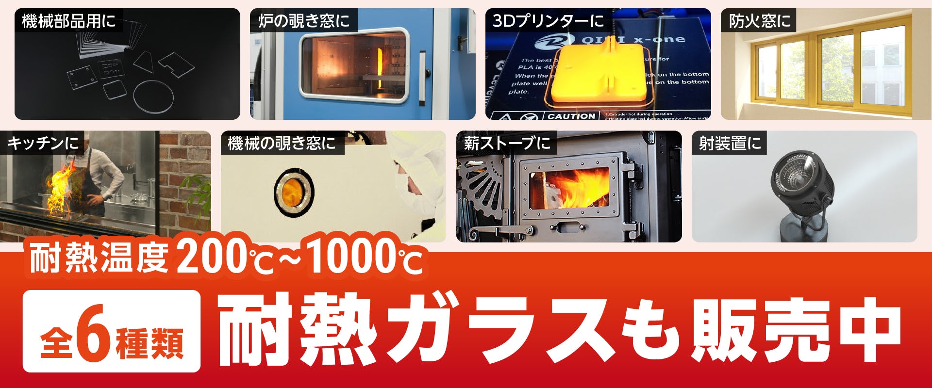 急激な温度変化に強い。機械の覗き窓や水のかかる焼き場などに。