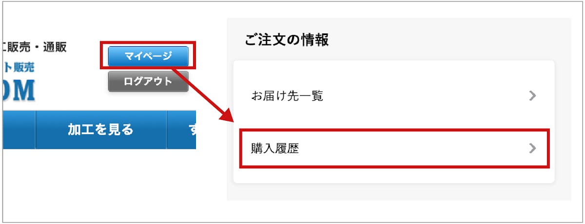 会員登録済の方は、ログイン画面からログインし、マイページにある「購入履歴」をクリックしてください。